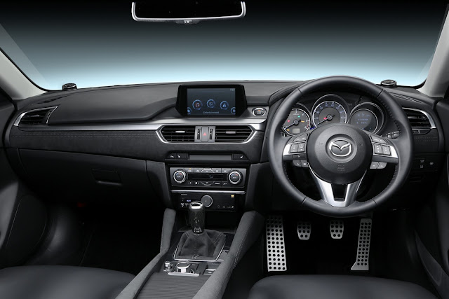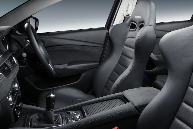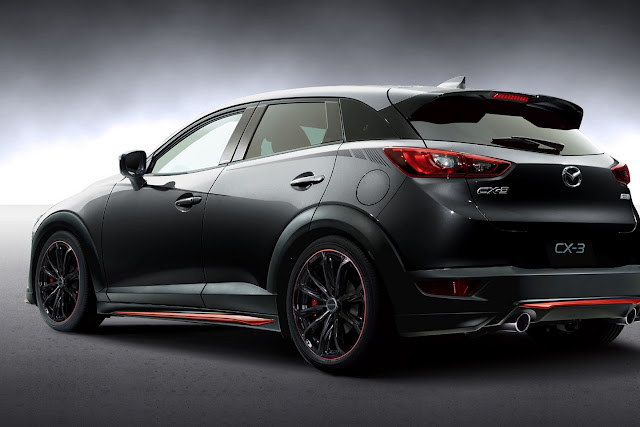 Začneme Mazdou CX-3 Racing Concept, která dostala agresivnější černý body kit s červenými akcenty. Ty najdeme také na nových litých kolech. Krom toho je sportovnější CX-3 i snížena blíže k zemi a vzadu má střešní spoiler či duální koncovku výfuku. Zato Mazda6 (u Japonců známá jako Atenza) se chlubí také přídomkem Racing Concept a má černý aero kit. Model střední třídy disponuje i novou sadou litých kol a zřejmě nabídne také tužší odpružení.