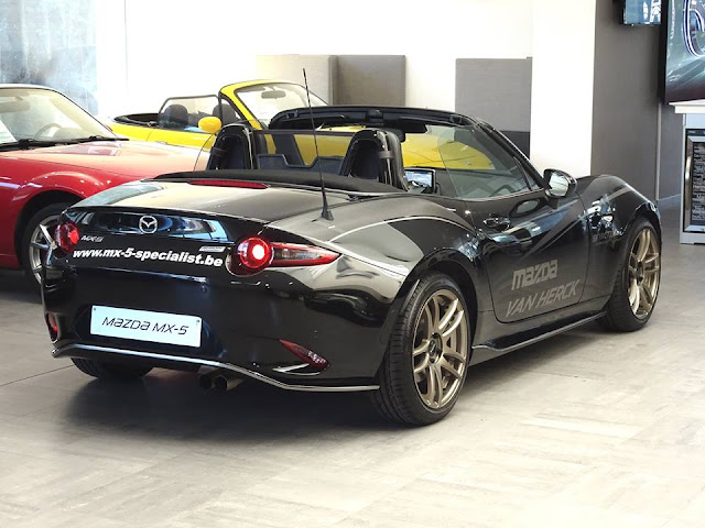 Belgičtí kolegové vzali standardní MX-5 (ND), která má pod kapotou dvoulitrový čtyřválec o výkonu 160 koní a upravili ji sportovním vzduchovým filtrem, 17palcovými koly SHOXX Racing a snížením podvozku. Dále nabídne sportovní přední mřížku, karbonové polepy karoserie, větší větrnou mřížku za sedadly, ale také sportovně laděný výfuk s dvojitou koncovkou přímo od Mazdy. Celkovou sportovnost podtrhuje sada spoilerů Aeropack a v interiéru se vyjímá Alcantara Pack.