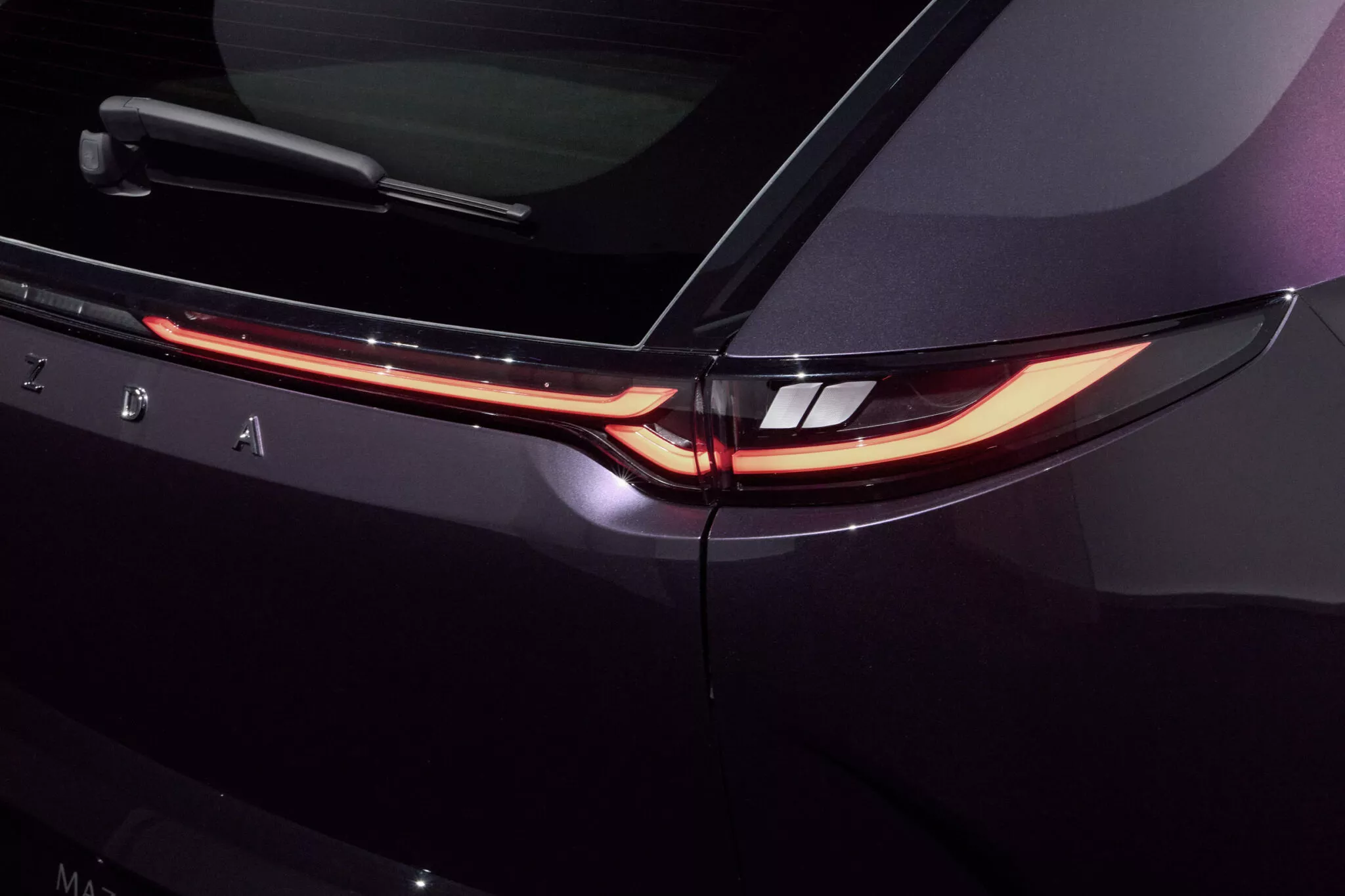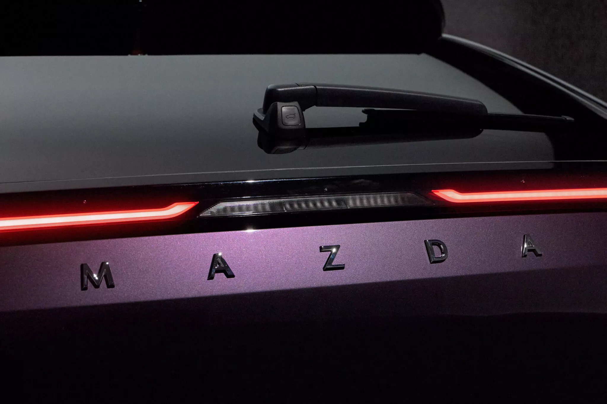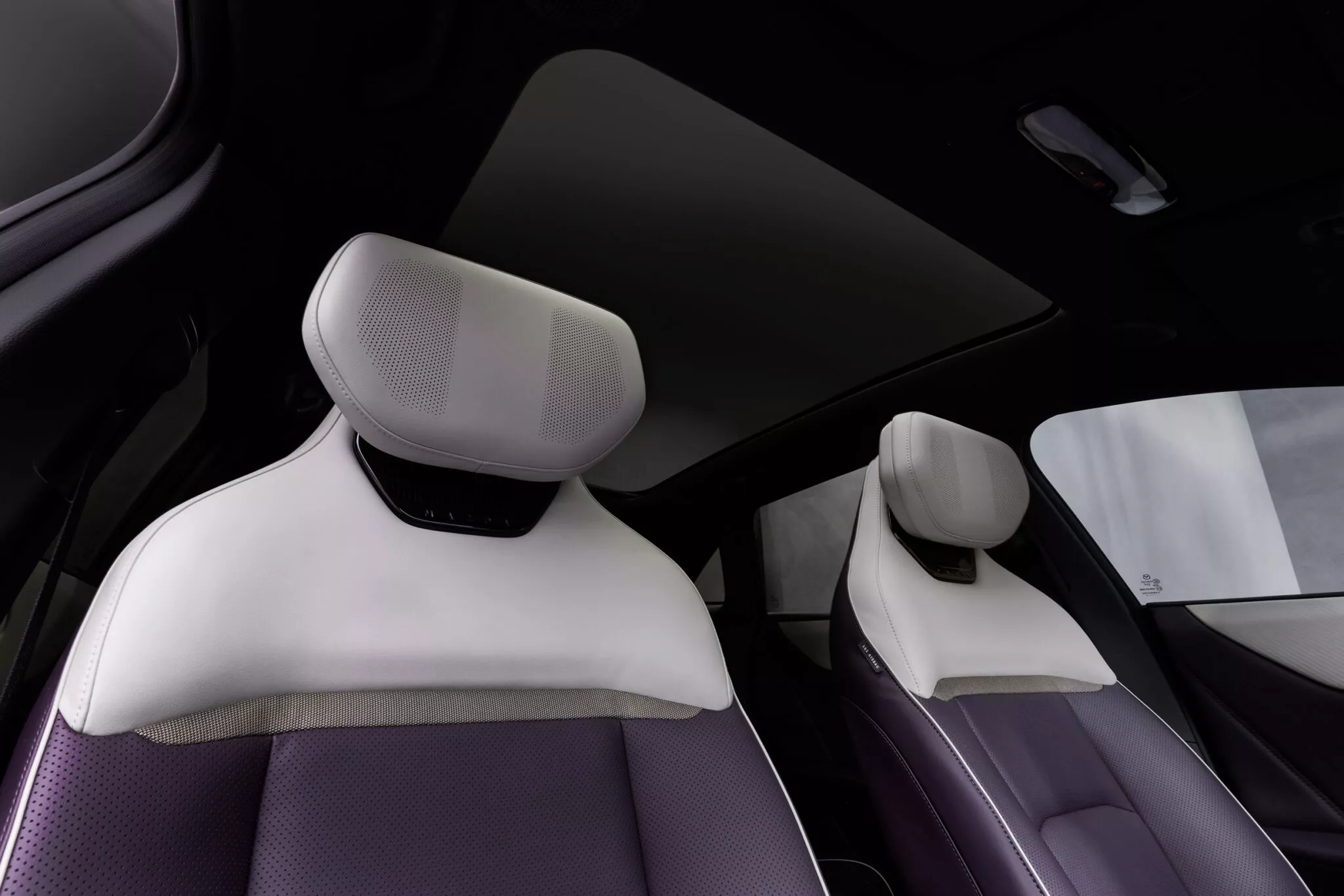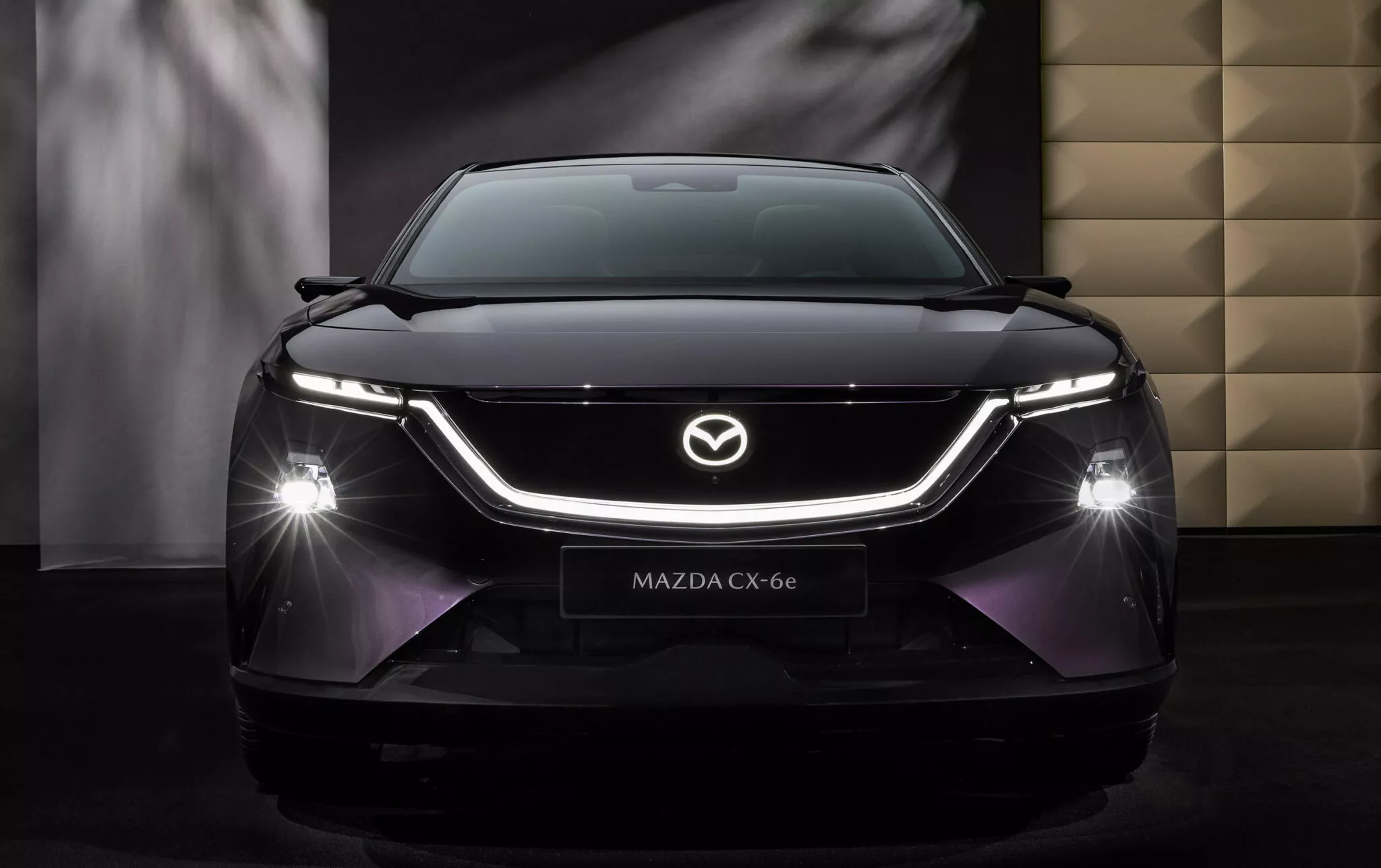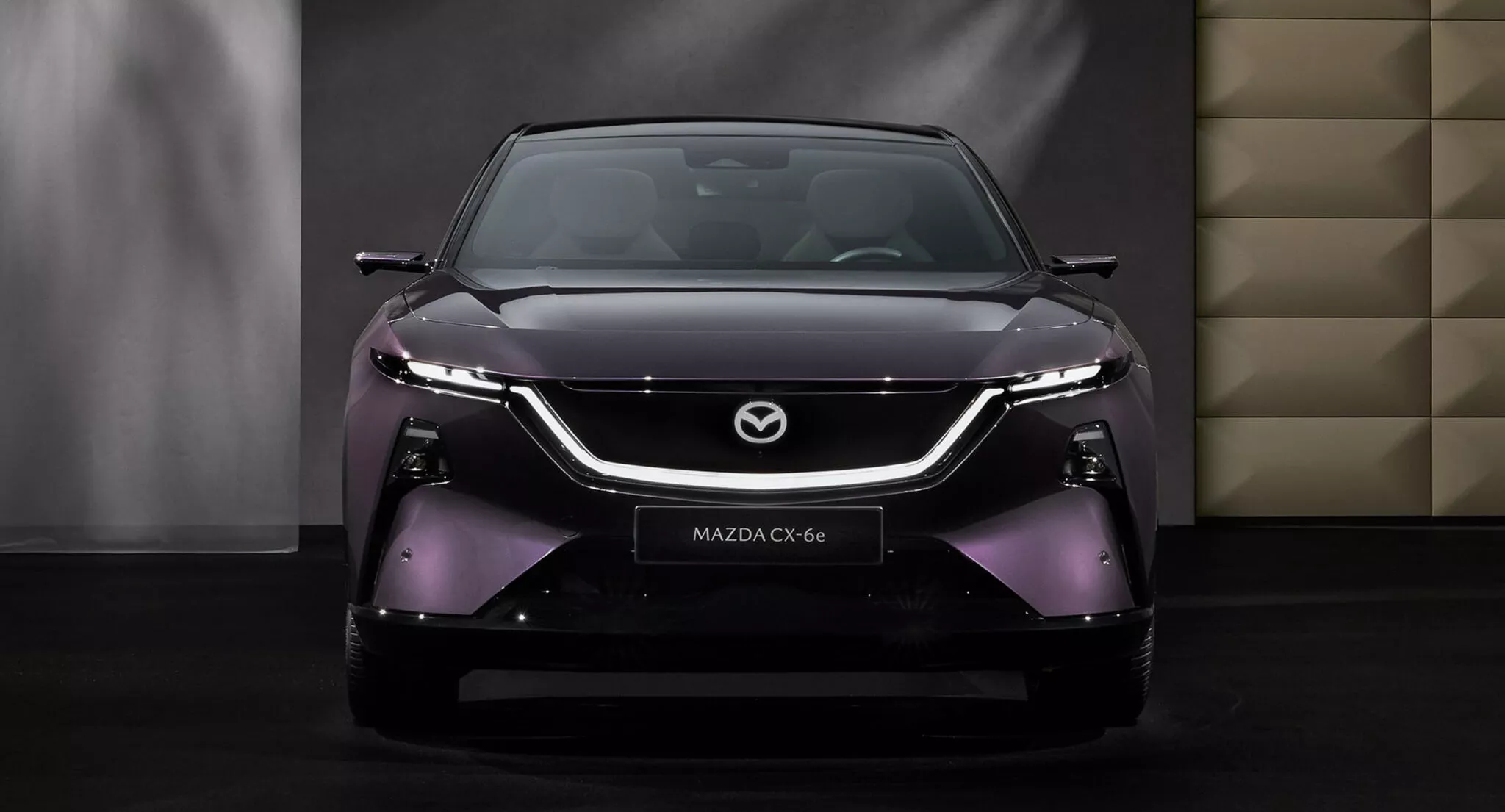 Interiér CX-6e není typický pro vozy značky Mazda, jelikož se tady táhne přes celou palubní desku 26palcový dotykový displej, proto nejsou potřeba žádná fyzická tlačítka, a místo přístrojového štítu je head-up displej. Krom toho infotainment nabízí ovládání gesty, vícejazyčné rozpoznávání hlasu, reproduktory v opěrkách hlavy a místo klasických zpětných zrcátek jsou kamery promítající obraz na displeje ve dveřních výplních. Je to vše vstříc budoucnosti, ale bohužel do typické Mazdy to má daleko… nebo je to jen o zvyku? Z ceníku bude možné si vybrat jeden ze sedmi nabízených odstínů karoserie, přičemž v čele bude fialový Nightfall Violet. To je sytý a lesklý odstín, který se v závislosti na osvětlení mění mezi zářivě fialovou záři a téměř černé stíny.