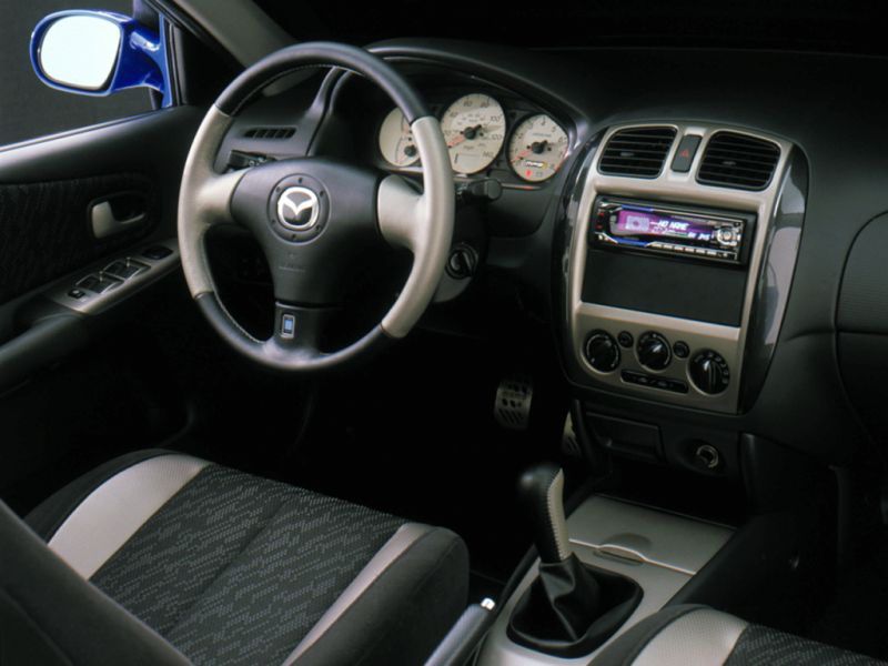 Nicméně, sportovní Mazda 323 MPS vychází z čtyřdveřového sedanu, generace BJ, a je k nepřehlédnutí díky sportovnímu image, které napovídá, že vůz nabídne nadbytek výkonu, ale také vzrušující zážitky z jízdy. Zvenčí oproti standardnímu provedení ji poznáte podle agresivního body kitu, 17palcových litých kol s nízkoprofilovými pneumatikami o rozměru 205/45R17 a rozměrného zadního spoileru. Dokonce je 323 MPS také snížena oproti sériové variaci, a to díky speciálnímu odpružení. Sportovnost je k vidění také v interiéru – například bíle podbarvené budíky, hliníkové pedály a další.