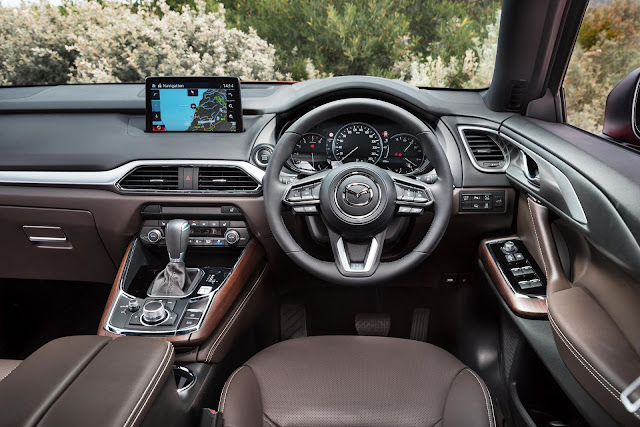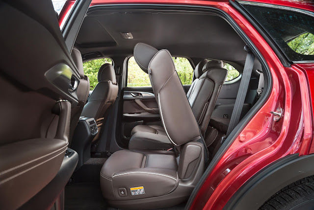 Inovace se dostavily i do kabiny, kde se vyjímá nově 9palcový displej multimediálního systému na palubní desce. Jak už asi víte, tak CX-9 nabízí třetí řadu sedadel. A do té bude nyní lepší přístup, jelikož velké SUV dostalo v rámci faceliftu tlačítko, umístěné na spodní straně druhé řady sedadel, pomocí kterého se dané sedadlo sklopí a odsune vpřed. Navíc cestující na úplně zadních sedadlech mohou využívat i USB porty, díky kterým lze nabíjet třeba mobilní telefony.