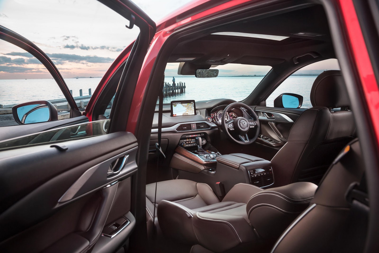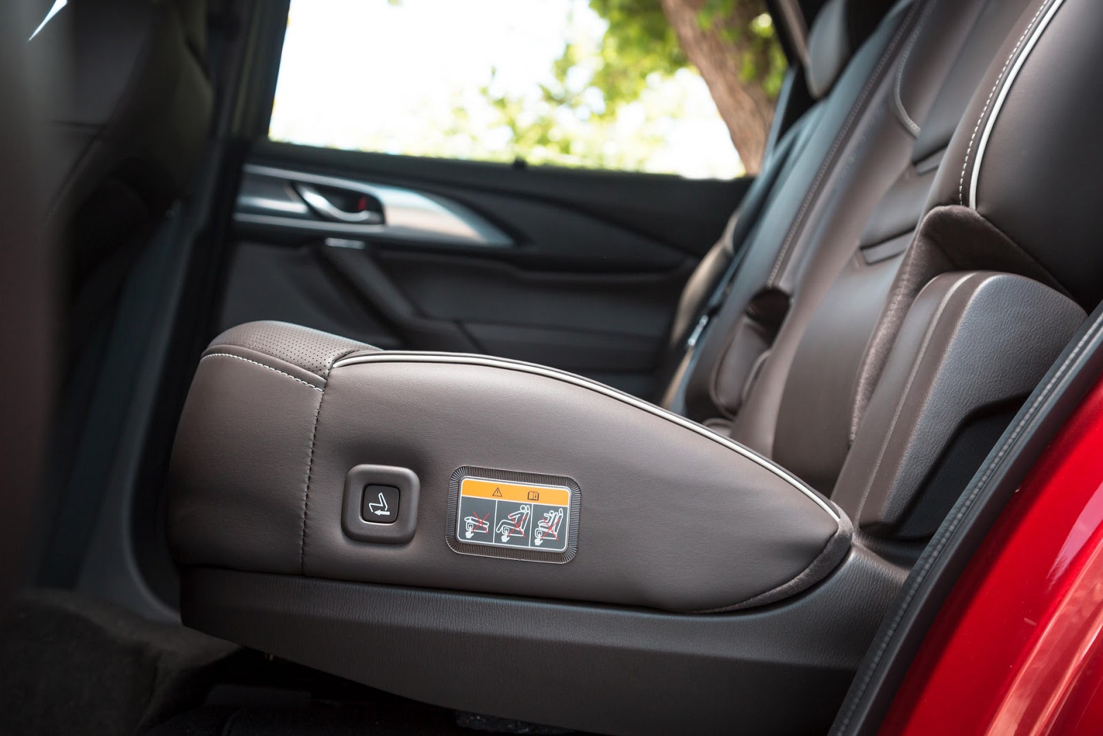 Inovace se dostavily i do kabiny, kde se vyjímá nově 9palcový displej multimediálního systému na palubní desce. Jak už asi víte, tak CX-9 nabízí třetí řadu sedadel. A do té bude nyní lepší přístup, jelikož velké SUV dostalo v rámci faceliftu tlačítko, umístěné na spodní straně druhé řady sedadel, pomocí kterého se dané sedadlo sklopí a odsune vpřed. Navíc cestující na úplně zadních sedadlech mohou využívat i USB porty, díky kterým lze nabíjet třeba mobilní telefony.