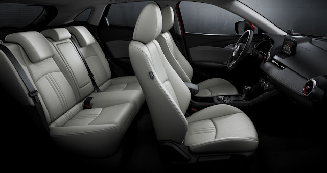 Co se týče interiéru, nelze zde přehlédnout nově navržený středový panel včetně nově aplikované elektronické ruční brzdy. Ta zlepšila nejen funkčnost vozu, ale také dala návrhářům prostor pro přemístění držáků nápojů a přehodnocení středové konzole včetně loketní opěrky. Ta je navíc doplněna o měkké polstrování a CX-3 tak dodá kvalitnější dojem.