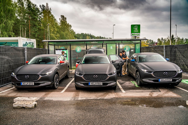 V současné době se prohání po silnicích, zejména norských, testovací prototypy e-TPV (Electric Technology Prove-Out Vehicle), což jsou v podstatě nedávno představené modely CX-30 v matně šedém odstínu, ale v jejich útrobách se nachází zcela nová technika. Připravovaný elektromobil, který se má právě představit až v roce 2020, má být samostatným modelem v portfoliu, čili nepůjde o derivát nějakého současného vozu, a dokonce na vlastní speciální platformě.