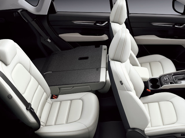 Zadní sedadla u nové CX-5 dostala jinou polohu, tzn. opěradlo je o dva stupně ve větším úhlu, proto byla potřeba instalace dvoukrokového mechanismu. Zavazadlový prostor nyní nabídne objem 505 litrů a ve srovnání s předchozí generací jde o nárůst o 2 litry, ale zato má CX-5 nově elektricky ovládané páté dveře (pochopitelně za příplatek) a ty se otevřou do libovolné výšky pomocí jednoduchých a kompaktních vzpěr dle povelů skrz tlačítka na klíčence.