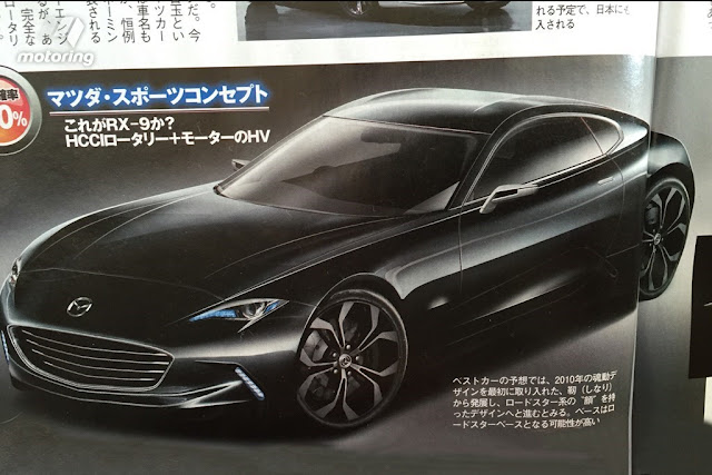 Ovšem jsme jediný český magazín o Mazdách, proto jsem pátral po dalších podrobnostech k nové RX-9 a od nejmenovaného zdroje, který je v nitru značky, jsem se dozvěděl, že plánovaný koncept má velmi blízko výrobě, poněvadž se na něm pracuje už velmi dlouho. Dále zmínil, že někteří zaměstnanci Mazdy jeli v létě do hlavního evropského sídla v Německu, kde se nacházelo na zkoušku několik sportovních aut od značek Ferrari, Lamborghini, Jaguar a další. Co to znamená? Že budoucí Mazda „RX-9“ se má těmto vozům vyrovnat. Prozatím není oficiální ani příchod rotačního motoru, v konceptu pravděpodobně bude, avšak v sériové podobě zatím není jistý. Důvod? Neví se, zda splní emisní normu Euro 6.