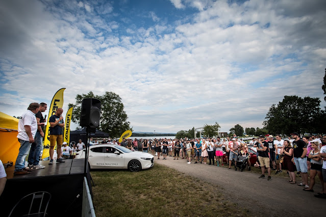 Následně Oťas předal slovo Jirkovi Lášovi, pravda, málokomu tohle jméno něco řekne. Takže pro pořádek, Jirka Láša, coby Autolaros Speed Ostrava (prodejce vozů Mazda a Hyundai), stál za úplně prvním srazem vozů Mazda MX-5 v České republice, který se uskutečnil v roce 1999. Skrze mikrofon prozradil přítomným: „Tenkrát nám dojelo „neuvěřitelných“ 13 aut a mysleli jsme si, co jsme dokázali za super sraz, a teď? Vidím tady několikanásobně vyšší počet MX-5 a nenapadlo by mě v tom ’99, že se tohle někdy stane. Jsem rád, že mají MX-5 takovou základnu a komunitu v Česku a že tomu mohu být sám svědkem“.
