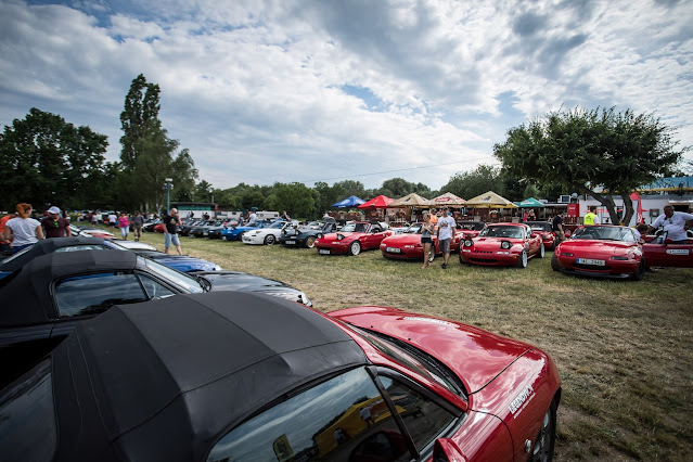 Pomalým tempem jsme projížděli celým kempem a potkávali houfy lidí, takže už tady mě napadlo, že to bude opravdu velká akce. Dojeli jsme k hlavní ploše a zde se nás ujali členové organizačního týmu a vysvětlili nám, že se parkuje podle dané generace, takže já jsem zavítal do první řady a kolega Milan zase do druhé. Ale řeknu Vám, vidět tolik MX-5 pohromadě při západu slunce a k tomu i davy lidí, které se baví společně a nedělají rozdíly na autech, to je zkrátka něco úžasného. Prohodil jsem pár slov s lidmi, které znám z předchozích srazů a postupně si procházel jednotlivé exponáty srazu. Nemohl jsem opomenout samozřejmě ani přihlášení do bohaté tomboly a na projížďku či slalom. Bohužel na slalom byla už kapacita naplněna, tak alespoň jsem se přihlásil k ranní projížďce. Pozdní večer pak přinesl víceméně dlouhé debaty u piva či seznamování, ale i těšení na sobotu.