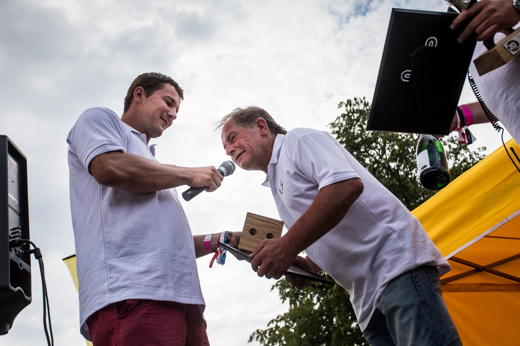 V podvečer si vzal slovo opět Adam Sandmann, aby udělal resumé sobotního programu a zároveň nás navnadil na vyhlášení soutěží, ale také bohaté tomboly. Než však k tomu došlo, přišlo na řadu poděkování zejména Oťasovi, který je v čele českého fanklubu MX-5 cirka dvacet let a za tu dobu dokázal uspořádat mnoho povedených srazů, na které vzpomínají dodnes jeho účastníci. Navíc Oťas zná MX-5 do posledního šroubku, a proto už dlouhá léta je opravuje pod rodinnou firmou Guru Racing Garage, sídlící v Praze, a není překvapením, že jezdí k němu na servis i lidé z druhé strany republiky. Proto si zasloužil ocenění na takové akci, která vznikla opět i díky němu, z rukou Adama i svého syna Michala. Následný dlouhý potlesk od všech přítomných byl pak jen třešničkou na dortu, krásný okamžik.