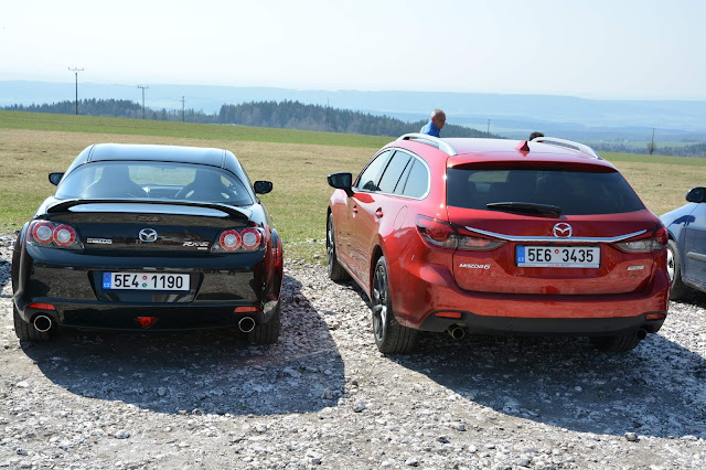 Ikonou Mazdy není jenom MX-5, ale také vozy RX. I když na sraz dorazilo pouze pár RX-8, i tak si zasloužily velkou pozornost i bez přítomnosti oblíbenějších RX-7. Velmi unikátním kouskem dorazil sympaťák Tomáš Engelmajer, přesněji černou RX-8 R3, proto není pochyb, že se kolem něj utvořil poměrně velký hlouček fanoušků, kamarádů a obdivovatelů. Tomovi to nedělá samozřejmě problém, neboť sám se tak nějak označuje za českého ambasadora RX-8 (smích). Přítomným lidem vyprávěl o tom, proč on má rád RX-8 (doma „schovává“ ještě klasickou), jak je potřeba o ně pečovat a co s nimi zažil. Velmi zajímavé povídání. Nutno říci, že RX-8 sluší i červená či žlutá barva, o čemž jsme se mohli přesvědčit na tomto srazu. Proto pokud budete někdy vážně uvažovat o koupi RX-8, vřele doporučuji nalezené inzeráty zkonzultovat právě s Tomášem, třeba ve skupině Mazdaři.
