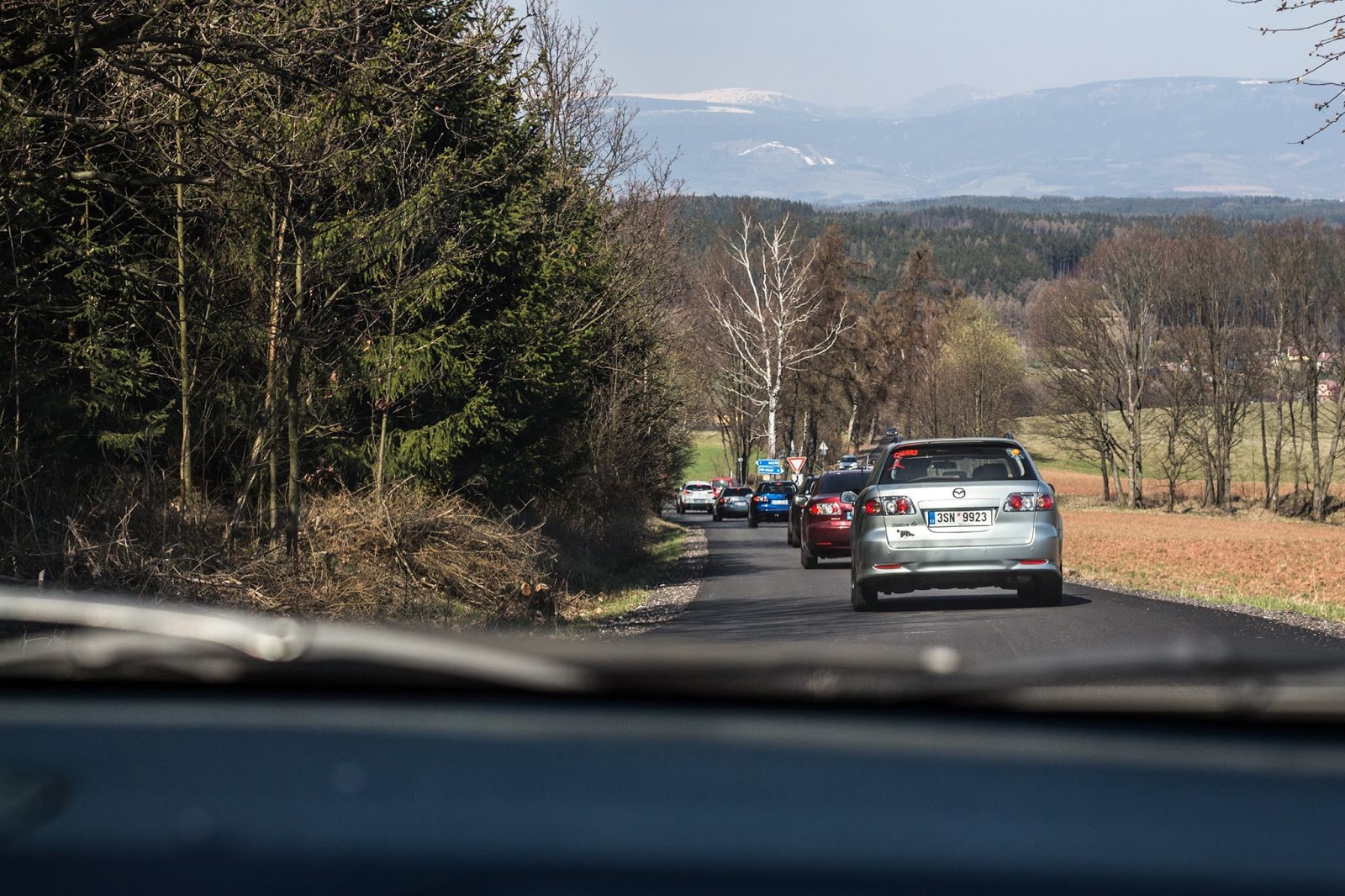 Začátek srazu byl naplánován na pravé poledne, a proto se pětičlenná parta Mazdařů, včetně mě, z Jižních Čech a Vysočiny domluvila na půl desátou v Havlíčkově Brodě – pravda, zpoždění se dostavilo. Takže nakonec jsme vyrazili kolem desáté hodiny směr Hradec Králové a nutno říci, že po cestě nebyla nuda, neboť nahánět se v MX-5 (NB) s Mazdou 3 MPS (BK) na průtazích, nic příjemného (smích). Dále s námi jely dvě Mazdy 3 (BK) a Mazda 5 (CR).