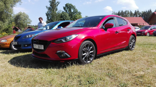 Po prohození pár vět jsem se začal rozhlížet kolem sebe, abych zjistil, jaké kousky vlastně dorazily. Stejně jako na srazu v okolí Hradce Králové, i tady dorazilo několik Mazd 6 ve všech generacích, dokonce i jedno MPS přijelo. Pak dorazily 323 (BA, BJ), bohužel BG chybělo. Osobně mě zaujala 626 4WD (GE) i přítomnost další GE a GF. Dále byly k vidění následující – CX-3, CX-5, 3 (BL a BM), MPV, RX-8, Premacy, 5 (CR) či Xedos 6. A světe, div se, ale MX-5 jsem přijel pouze já! Ovšem v sobotu večer těsně před mým odjezdem dojela ještě jedna. Po chvíli se začal zajímat o mou „Miu“ mladý pár, neboť také uvažují o koupi japonského roadsteru, tak jsme se dali do řeči. Příjemným překvapením byl také stánek Metabondu, kde testovali motorové oleje, které lijeme do Mazd.