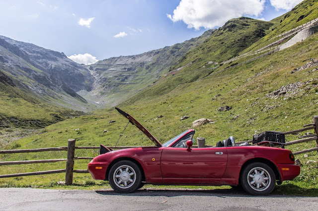 Miata doslova hltala kilometry a neměl jsem s ní jediný problém, že by něco nezvládla. Já jsem věřil jí a ona věřila mně. Při cestě do Livorna, odkud jezdí trajekty, jsme si udělali zajížďku přes Passo Stelvio a Santa Catarinu, které jsou na severu Itálie. Díky krásnému počasí bez mráčku, 35°C teploty vzduchu a otáčkách, které nešly pod 4000, jsem musel dvakrát zastavit na dochlazení motoru, který se přehříval. Dochlazování jsem řešil ale jedině ve Stelviu, zbytek cesty už byla teplota v pořádku.