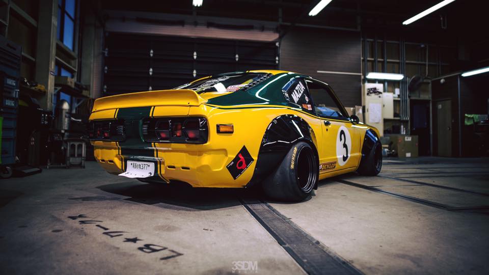 Protentokrát si vybral na mušku klasiku japonské automobilky, model RX-3, kterému dodal plno exteriérových i interiérových úprav podle receptu společnosti Liberty Walk. Zvenčí tak upravená RX-3 oslní novým widebody kitem, jež nabízí černé rozšířené lemy, černý přední splitter těsně nad zemí nebo malá zpětná zrcátka či další spoilery. Součástí každé úpravy Liberty Walk jsou nepochybně i masivně široká kola.
